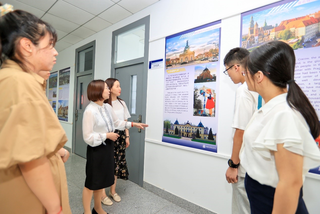 为将党史学习教育更好地融入学院文化建设,学院立足专业实际,利用有效空间,精心打造“中波文化走廊”。展览采用中英文双语辅以精美图片,共40张展板,分为“中国篇”和“波兰篇”两个板块。“波兰篇”重点介绍波兰概况、著名人物、重要城市、著名建筑、高等教育等,“中国篇”重点介绍著名城市、著名人物、城市地标、大国工程,同时介绍“一带一路”、“中波友好往来”、“中波教育合作”的重要成就,营造用建筑、科技等文化育人的良好氛围。通过中波文化走廊,使学生们提前了解波兰国家、即留学城市,熟悉大学和专业,大力提升跨文化知识,增进国际视野。同时,通过耳濡目染的展览,更好地了解中国的科技成就、大国工程,增进文化自信,将来到波兰乃至世界,都能讲好中国故事、传播中国文化,为高质量共建“一带一路”做出贡献。