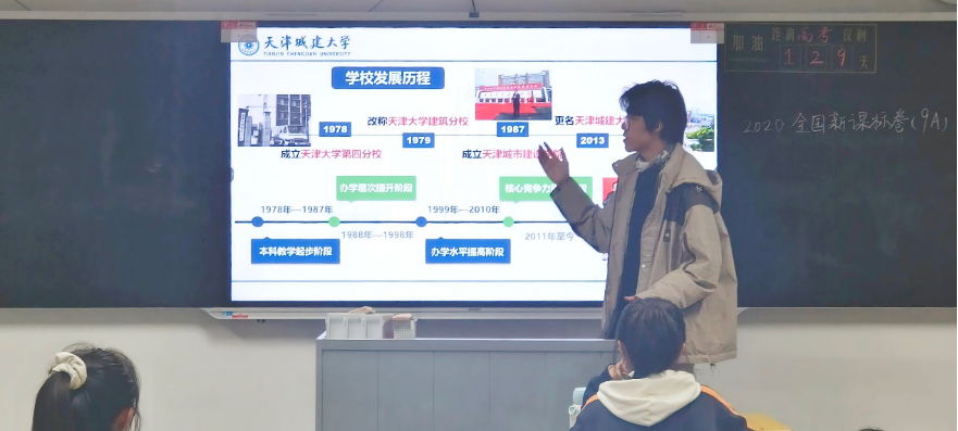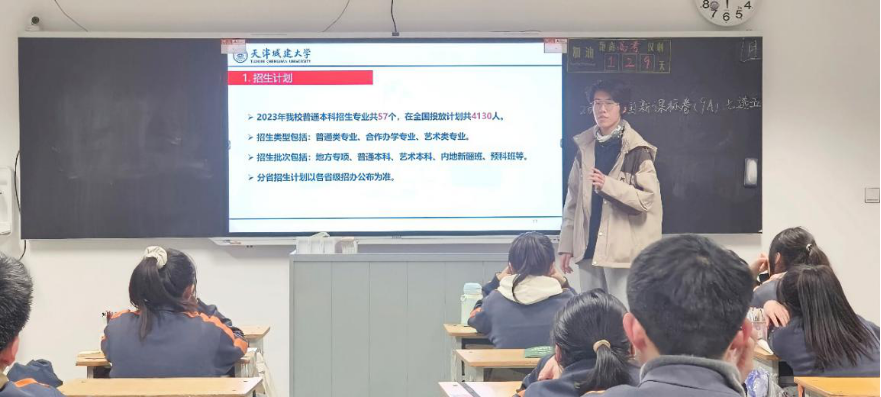 在宣讲过程中,通过PPT和宣传片展示了母校的学科实力、师资力量以及丰富多彩的校园生活。随后,进行了口头介绍,详细解读了天城大的发展理念、办学特色和未来规划。随后紧密结合个人经历,生动地分享了在天城大学习、生活的点点滴滴,以及在学术、社会活动中的收获和成长。
