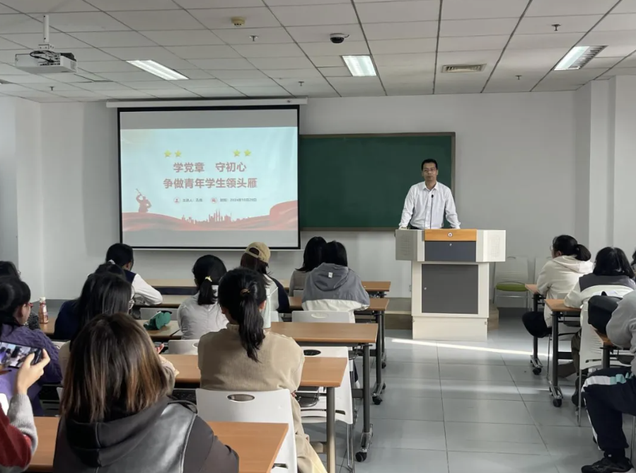 孔伟副书记为同学们讲授《学党章 守初心 争做青年学生领头雁》专题党课。他指出党章是党的根本大法,是全党必须遵循的总规矩。同学们要深刻理解党章修订的历史背景和现实意义,明确党员的义务和党的纪律,从而更好地发挥先锋模范作用。希望同学们能够在“群雁”班、“青雁”班、“头雁”班的学习中,坚定理想信念,牢记初心使命,努力学习,勇于创新,不断磨砺意志,锤炼品格,提升自身综合素质,以实际行动践行党的宗旨,成为引领时代潮流的先锋,以高度的政治觉悟和责任感,为强国建设和民族复兴伟业贡献自己的智慧和力量。