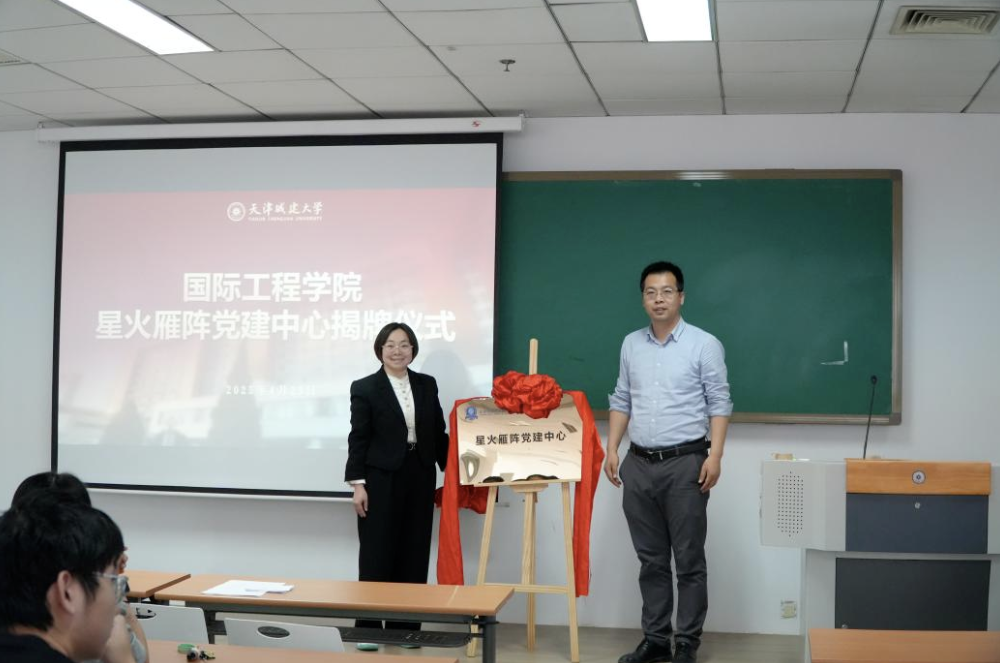 2025年4月23日,WilliamHill中文在现代教育中心1020举行“星火雁阵”党建中心揭牌仪式,同步启动2025年上半年“国工雁阵”党员骨干培育工程。学院党总支书记杨萍、副书记孔伟出席,分党校指导老师张立娟主持会议,来自回国党员“归雁”班、入党积极分子“青雁”班及青马班的百余名学员共同见证了这一重要时刻。
