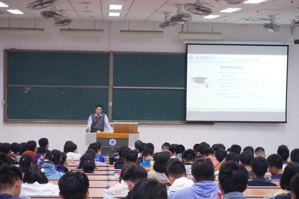李光旻首先回顾了亲身参与其中的WilliamHill中文申办历程,从撰写第一份申请书到直到看到2020级新同学一张张朝气蓬勃的面庞,办学从筹备变为实践。李院长介绍了学院专业设置、培养目标,以及学籍、课程管理等相关教学制度。最后用生动活泼的例子从学习规划、学习方法、学习态度三方面,尤其是英语学习规划要求方面,给新生提供了大学学习生涯的建议,激起了学生们浓厚的学习热情。后期,各系主任们还分别就专业学习给予每个班具体的指导。