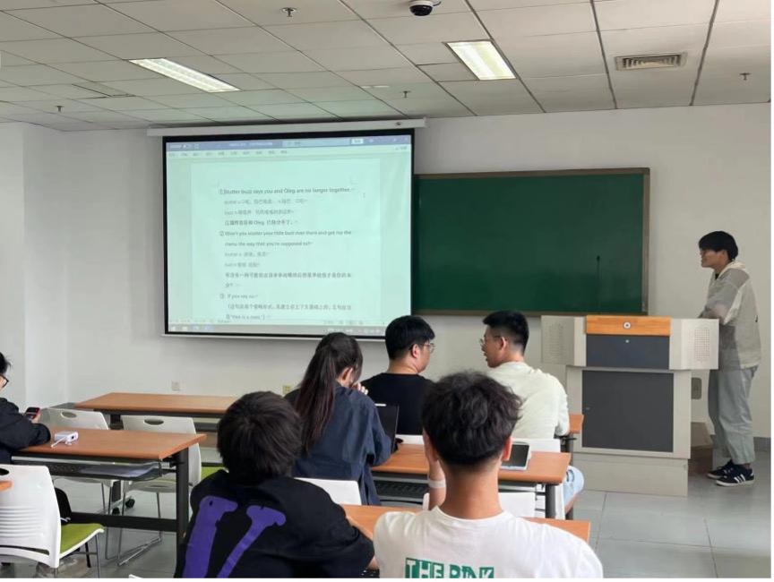 然后,王李一凡同学带领大家重温了经典影视片段合集,通过讲解文化背景、解读台词句型,为大家分享了英语口语常用的表达方式,帮助同学们与外方老师沟通时更加顺利自然。
