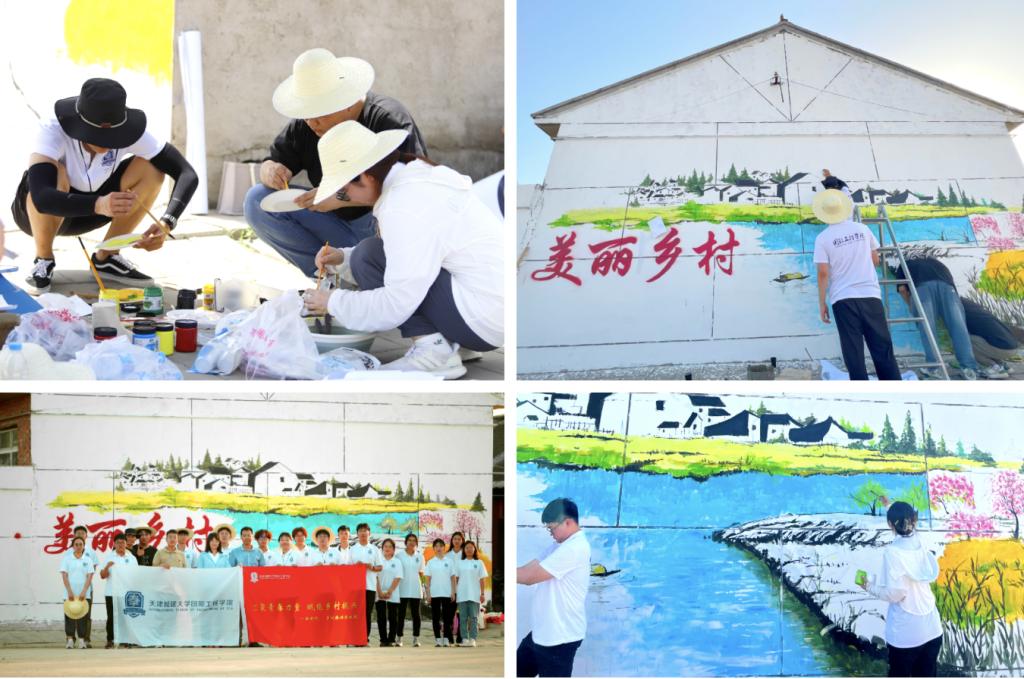 为提升乡风文明,助力乡村振兴,实践队成员前期对接霍各庄镇西霍各庄村,调研乡村需求,结合专业特长,实地勘察制定墙绘方案,按照图稿在墙体打底稿、涂色,用多彩墙绘扮靓美丽乡村。